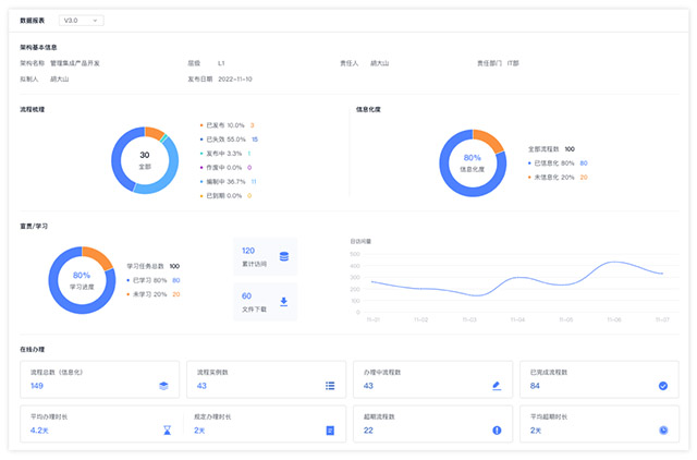 1、從流程、組織、人員、時間等多維度進(jìn)行流程效能分析,自定義多重組合,發(fā)現(xiàn)流程瓶頸和黑洞。