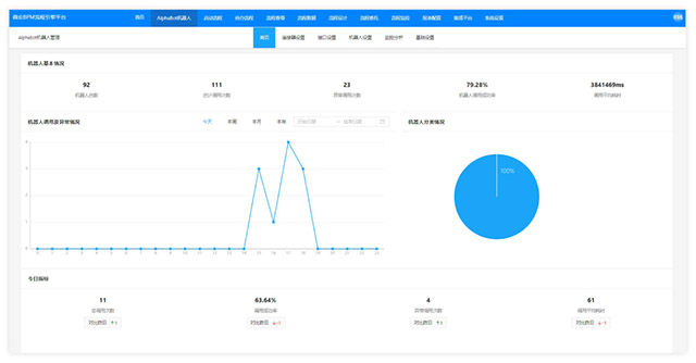 ● 機(jī)器人運(yùn)行監(jiān)控中心,監(jiān)控所有機(jī)器人運(yùn)行狀態(tài),異常數(shù)據(jù)實(shí)時預(yù)警。